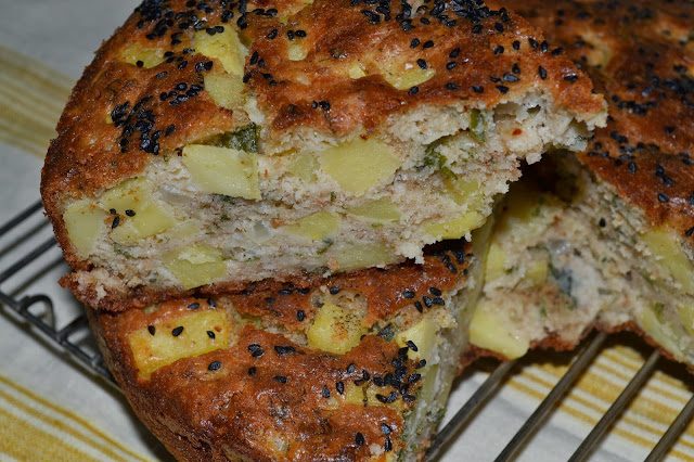 Yapılışı: Geni bir kapta yumurtayı,yağı,yoğurdu iyice çırpın üzerine unu yavaş yavaş dökün ve karıştırın,kabartma tozunu ve baharatları koyun kek kıvamında bir hamur olsun içine yeşillikleri, soğanı ve patatesleri koyun yağlanmış bir kalıba dökün 180 derecede ısıtılmış fırında alt üst kızartın biraz dinlenince servis yapın